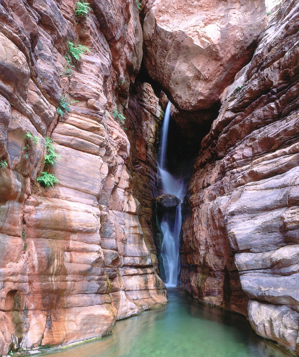 Nằm gọn trong Vườn quốc gia Grand Canyon, hẻm núi cùng tên là một trong những địa danh nổi tiếng nhất nước Mỹ và trên toàn thế giới. Vẻ đẹp hùng vĩ của hẻm núi cùng lớp đất đá màu sắc độc đáo khiến Grand Canyon trở thành kỳ quan tuyệt đẹp của thiên nhiên. Một con thác chảy ra từ lưng chừng hẻm núi. |