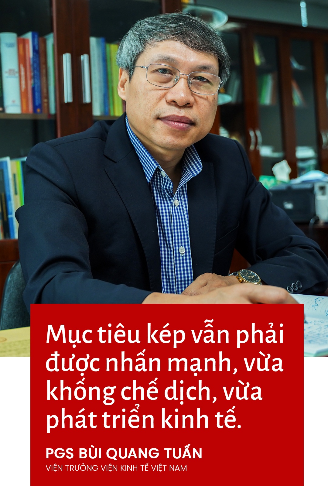 PGS TS Bùi Quang Tuấn, Viện trưởng Viện Kinh tế Việt Nam, cho rằng diễn biến và tác động của dịch Covid-19 đến kinh tế rất khó lường. Thế giới và trong nước đều đã trải qua 2 "cú sốc" với 2 làn sóng dịch Covid-19. Do đó, ông cho rằng các dự báo về tăng trưởng và phát triển kinh tế - xã hội phải tính tới các kịch bản của cú sốc hai lần (double-hit scenario) chứ không thể dự báo một chiều và dự báo cú sốc một lần (single-hit scenario) được.