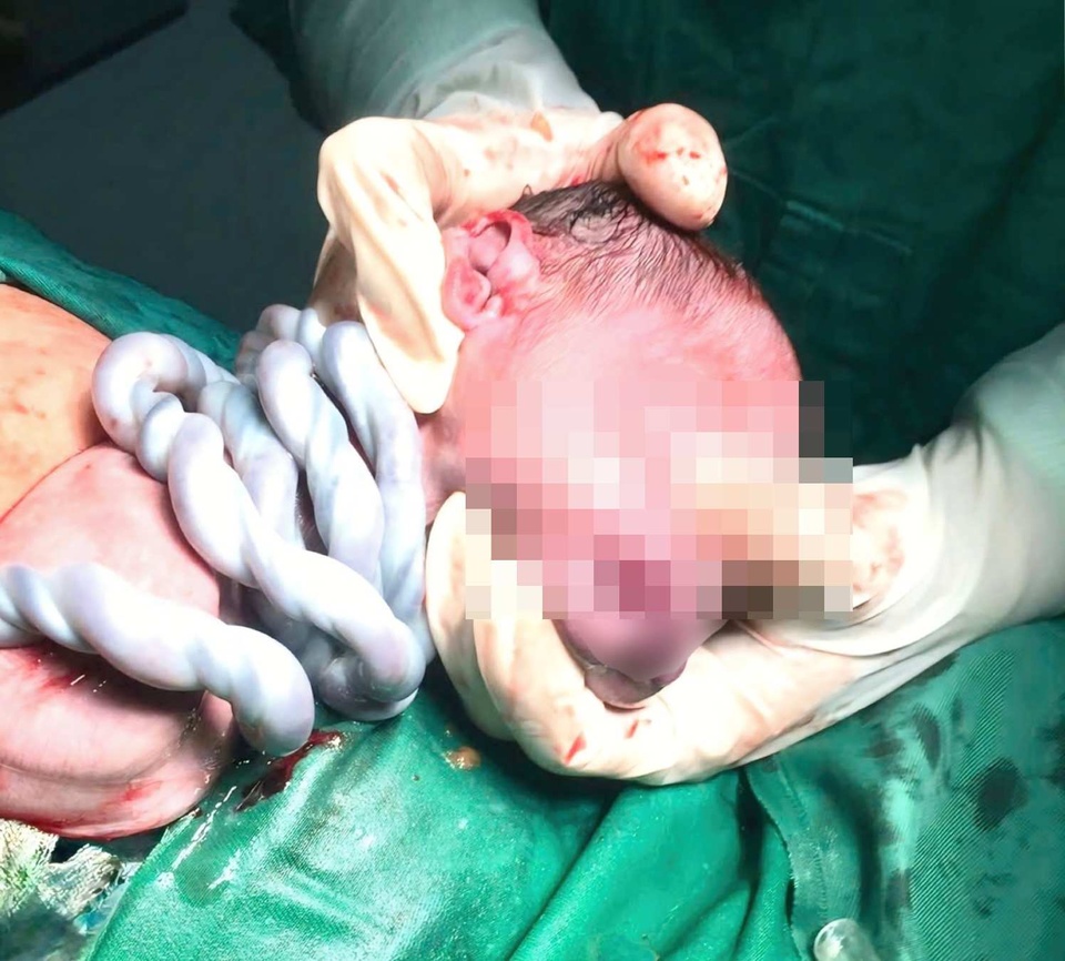 Trong quá trình phẫu thuật, kíp mổ bất ngờ nhận thấy dây rốn quấn cổ thai nhi thực tế lên đến 5 vòng.