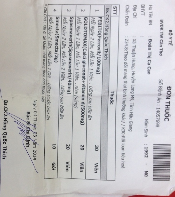 | Đơn thuốc rối loạn tiêu hóa được các bác sĩ kê cho sản phụ. |