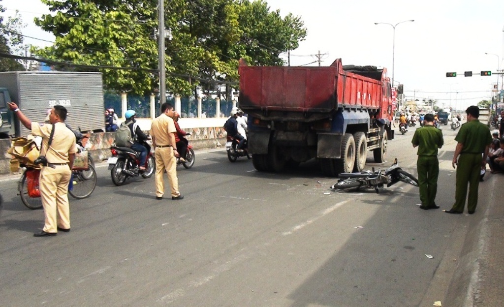 Thai phụ 4 tháng bị hất xuống đường sau cú tông của xe ben