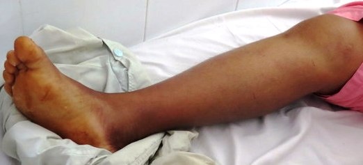 | Một bệnh nhân ở Đắk Nông bị rắn lục đuôi đỏ cắn, sau 3 ngày điều trị vết thương, chân của bệnh nhân này vẫn bị sưng, phù. |