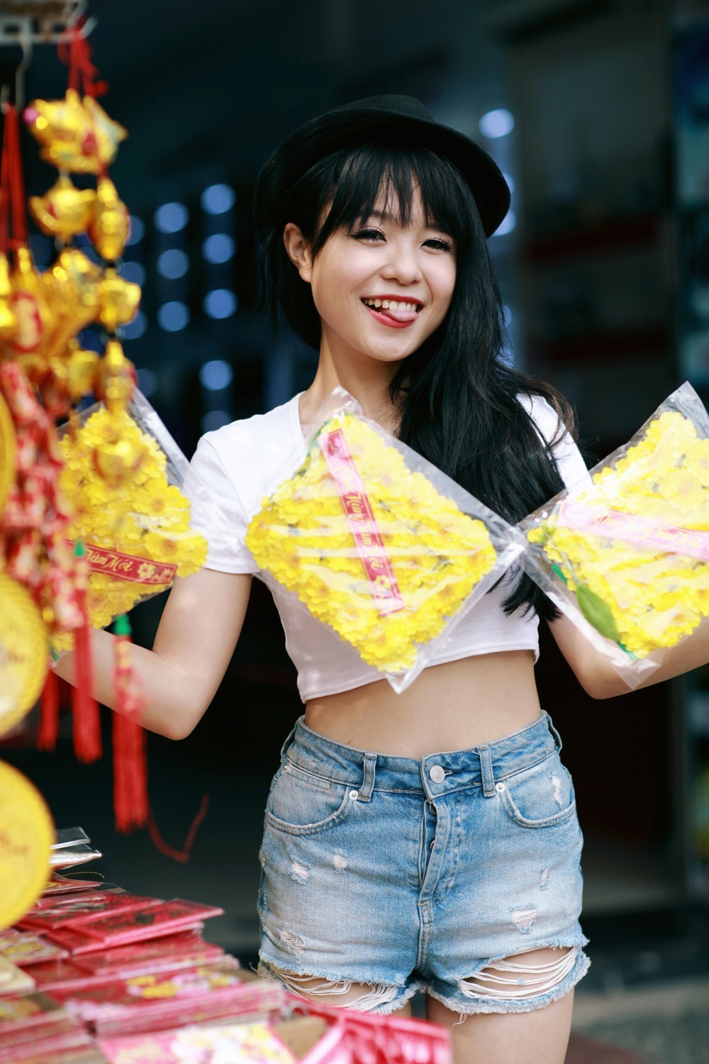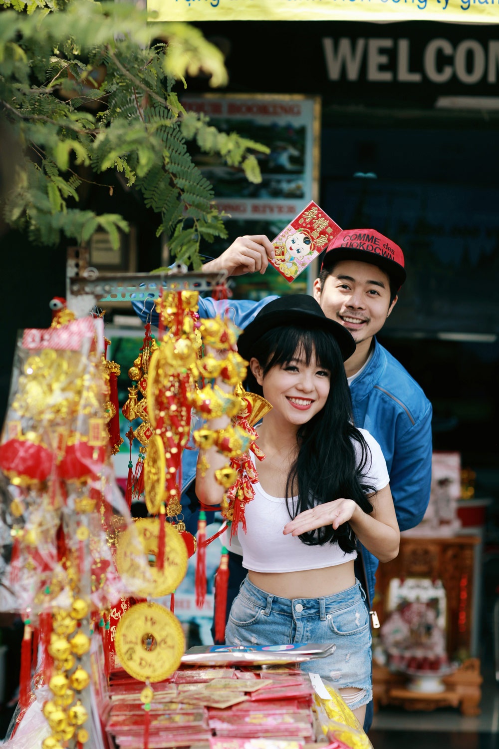 Sau khi hoàn thành công việc tốt đẹp, cả hai tranh thủ xuống phố du xuân.