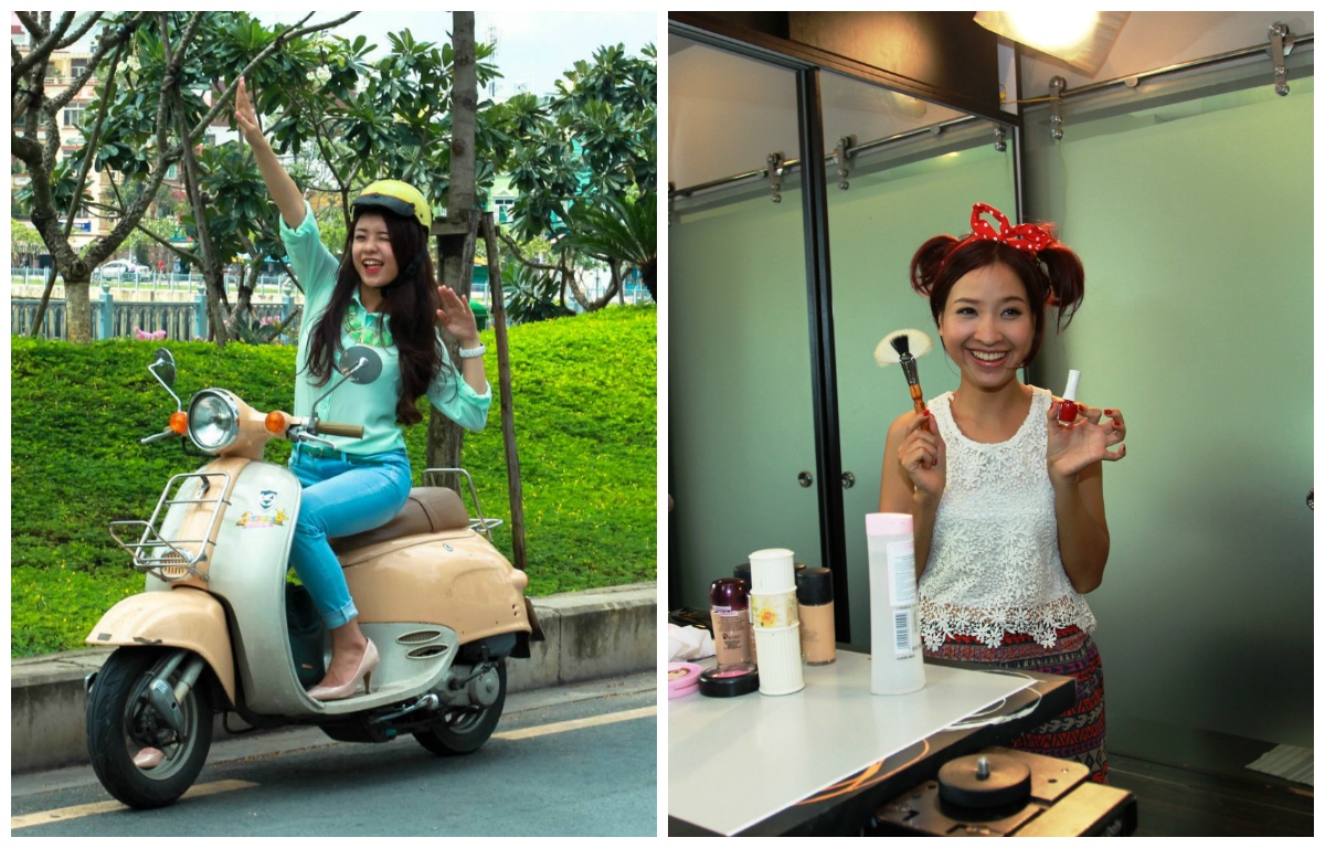 Cả hai cô nàng Nhã và Nga cùng so vẻ tươi tắn bằng những khoảnh khắc nhí nhảnh đáng yêu phía sau hậu trường