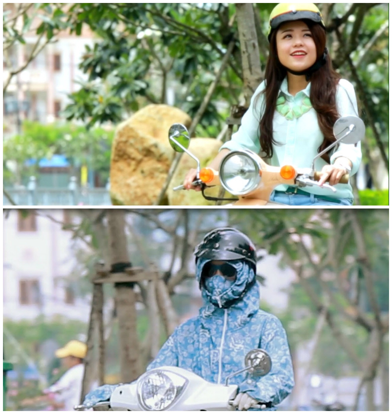 Một cảnh quay ngộ nghĩnh với hình ảnh đối lập của hai cô nàng: Nhã luôn tự tin với làn da tươi tắn và vẻ khỏe khoắn tự nhiên của mình, còn Nga thì rất cẩn thận và không sợ xấu xí với bộ trang phục“ninja” kín bưng.