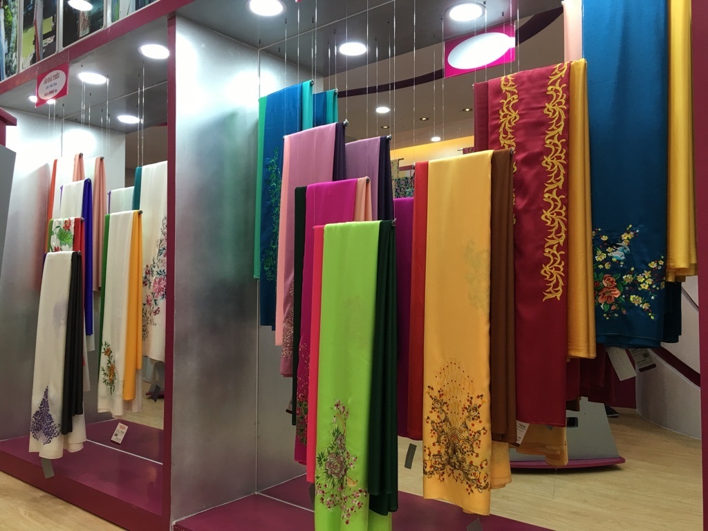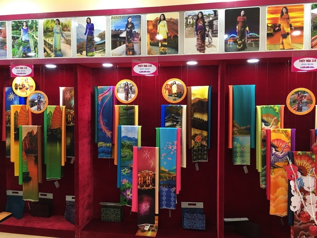 | Vải áo dài với chất liệu, màu sắc và hoa văn thiết kế phong phú. |