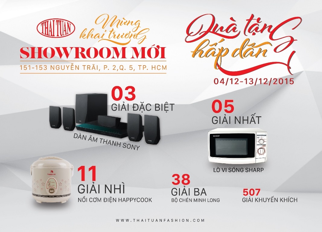 Thông tin chi tiết, liên hệ đường dây nóng: (08) 3859 1904 hoặc truy cập website: www.thaituanfashion.com, hoặc facebook: Thái Tuấn Fashion