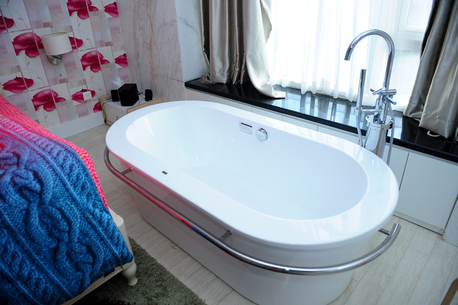 Bồn tắm được đặt một góc phòng ngủ cho thấy sự phóng khoáng của nữ chủ nhân.