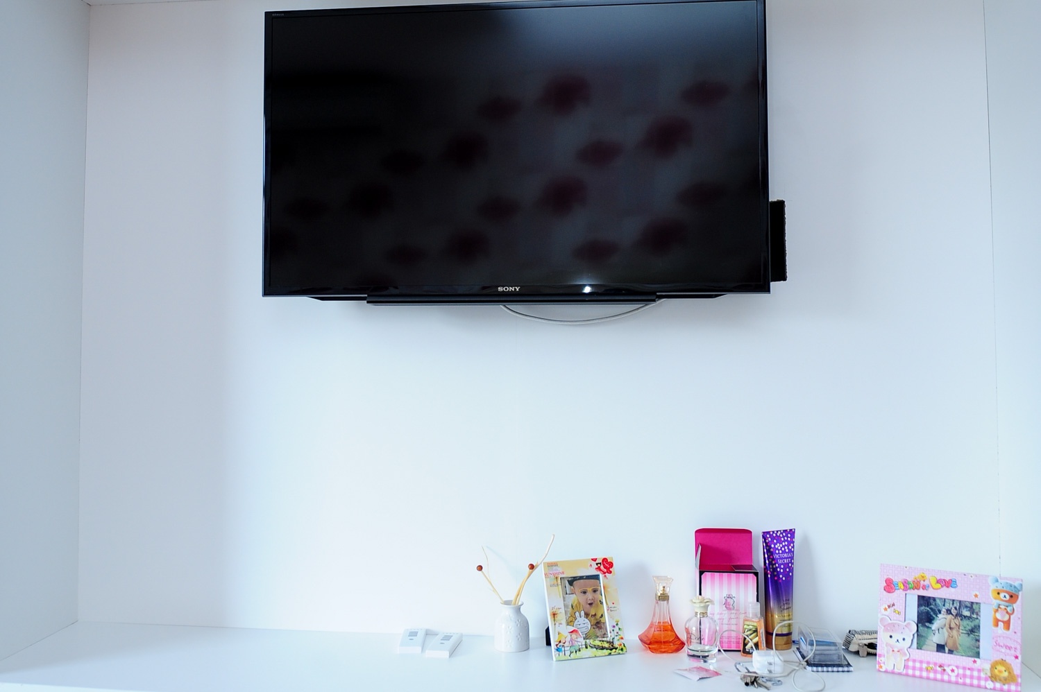 Kệ dưới tivi là nơi cựu hot girl đặt hình con trai và một số vật dụng hàng ngày.