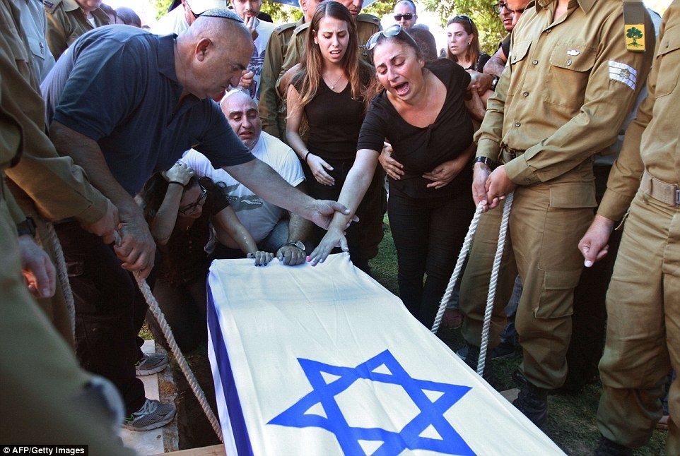 Người thân và gia đình tổ chức tang lễ cho một binh sĩ Israel 21 tuổi, người thiệt mạng khi tham chiến ở Gaza. Theo thống kê mới nhất, 29 người Israel thiệt mạng trong chiến dịch quân sự họ phát động. Ảnh: AFP |