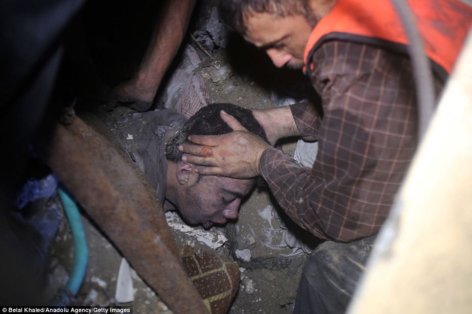 Các nhân viên mang bình oxy tới hiện trường để giúp các nạn nhân thở. Người ta cố gắng bỏ những khối bê tông khổng lồ trên người nạn nhân. Ngôi nhà của Selam sập trong một đợt không kích của quân đội Israel. Ảnh: Getty Images |