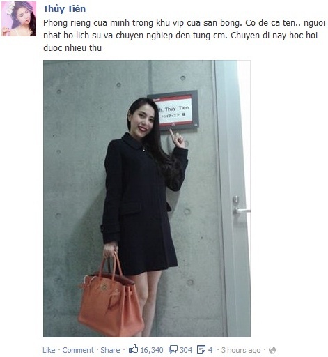 Trên mạng xã hội Facebook, Thủy Tiên chia sẻ cô được bố trí vào một phòng trong khu vực VIP của sân bóng. Tất cả đều được thực hiện hết sức chuyên nghiệp.