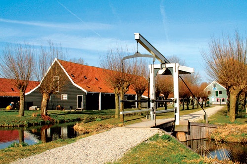 Vòng quanh làng là những con đường nhỏ rải sỏi với hàng cây trồng hai bên, nối các mảnh đất nhỏ bị ngăn cách bởi các con kênh đào nhờ những cây cầu rút. Những con bò gặm cỏ trên cánh đồng, những con gà lang thang trong vườn và cả những chiếc cối xay gió vẫn đang hoạt động.