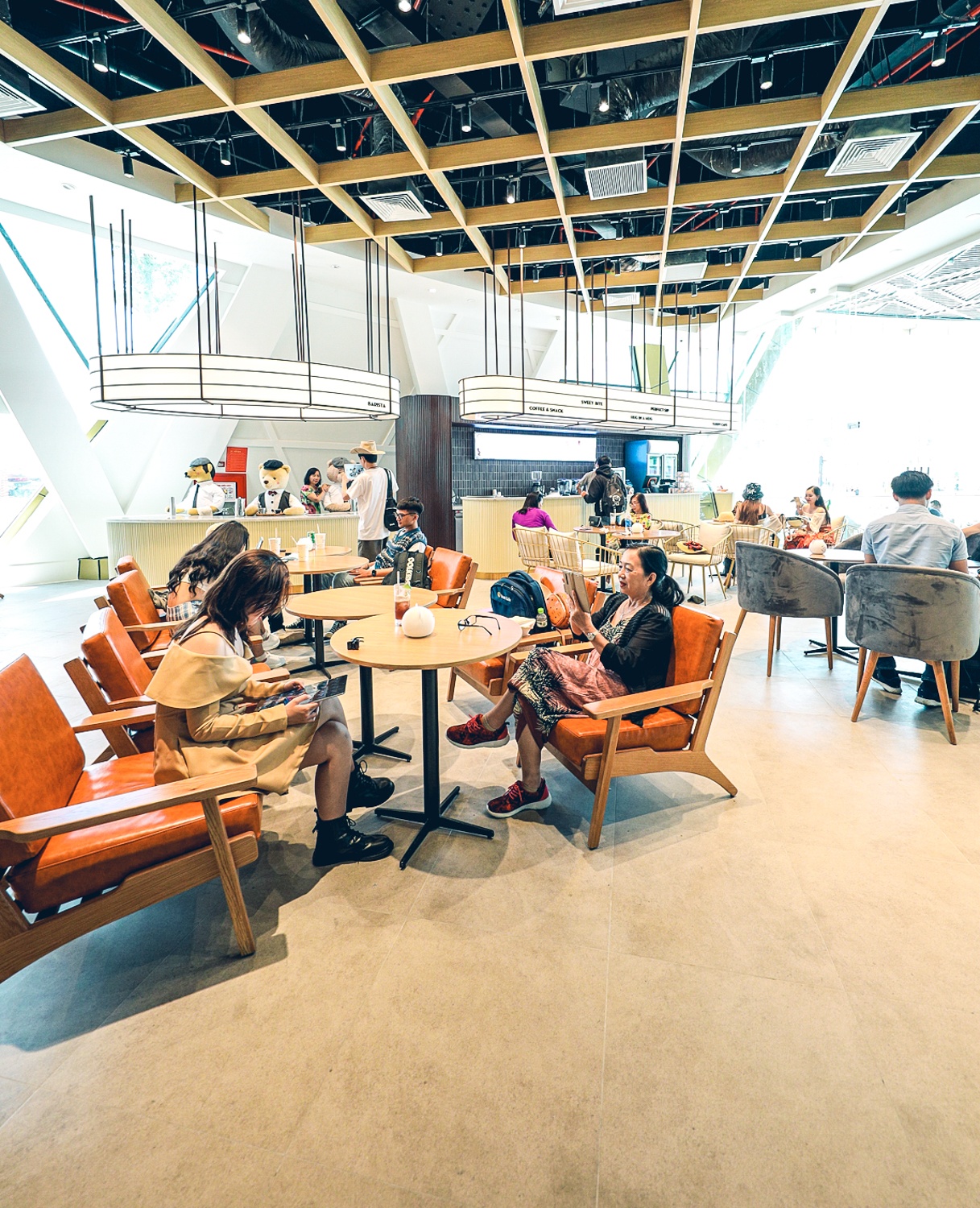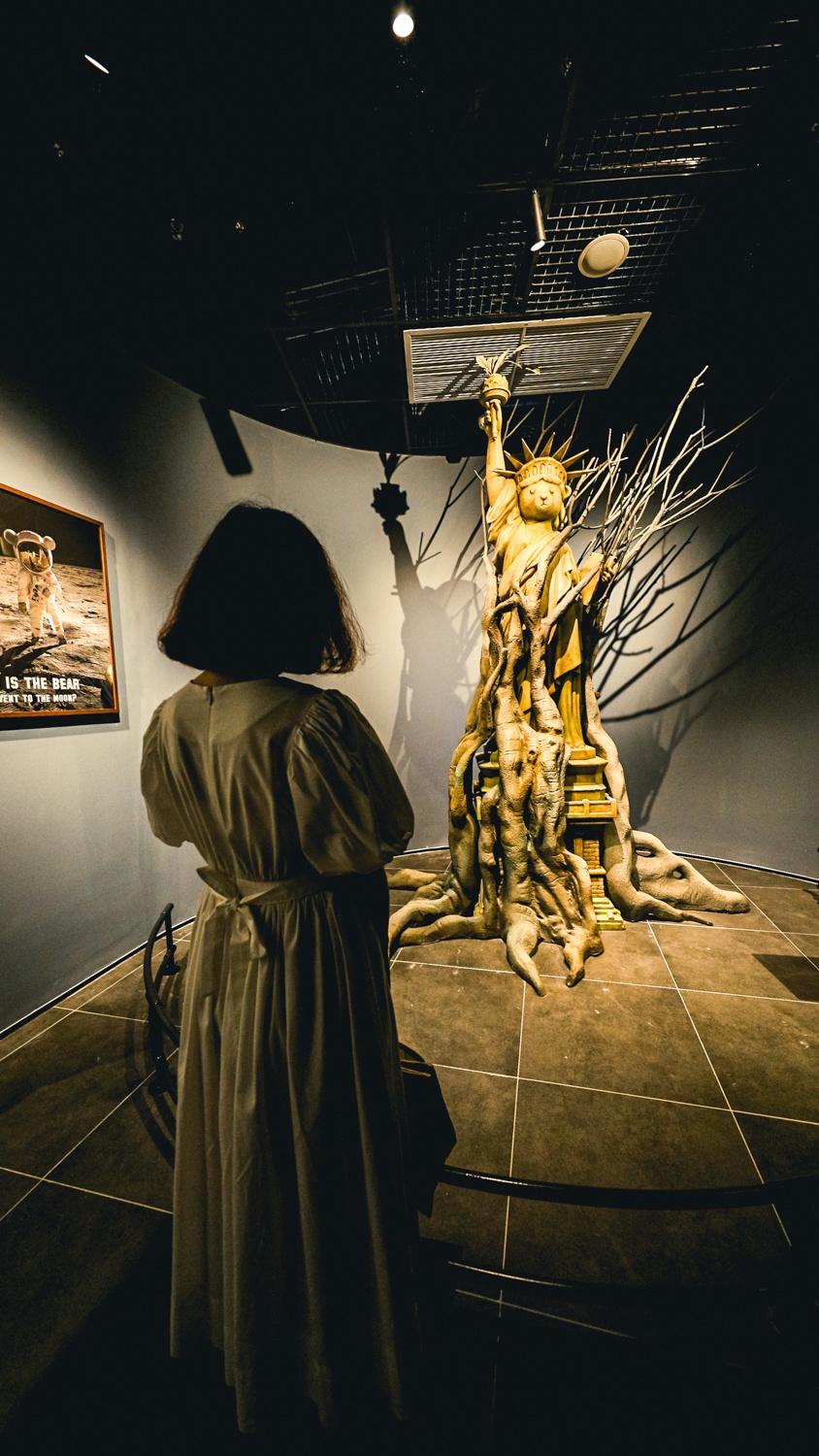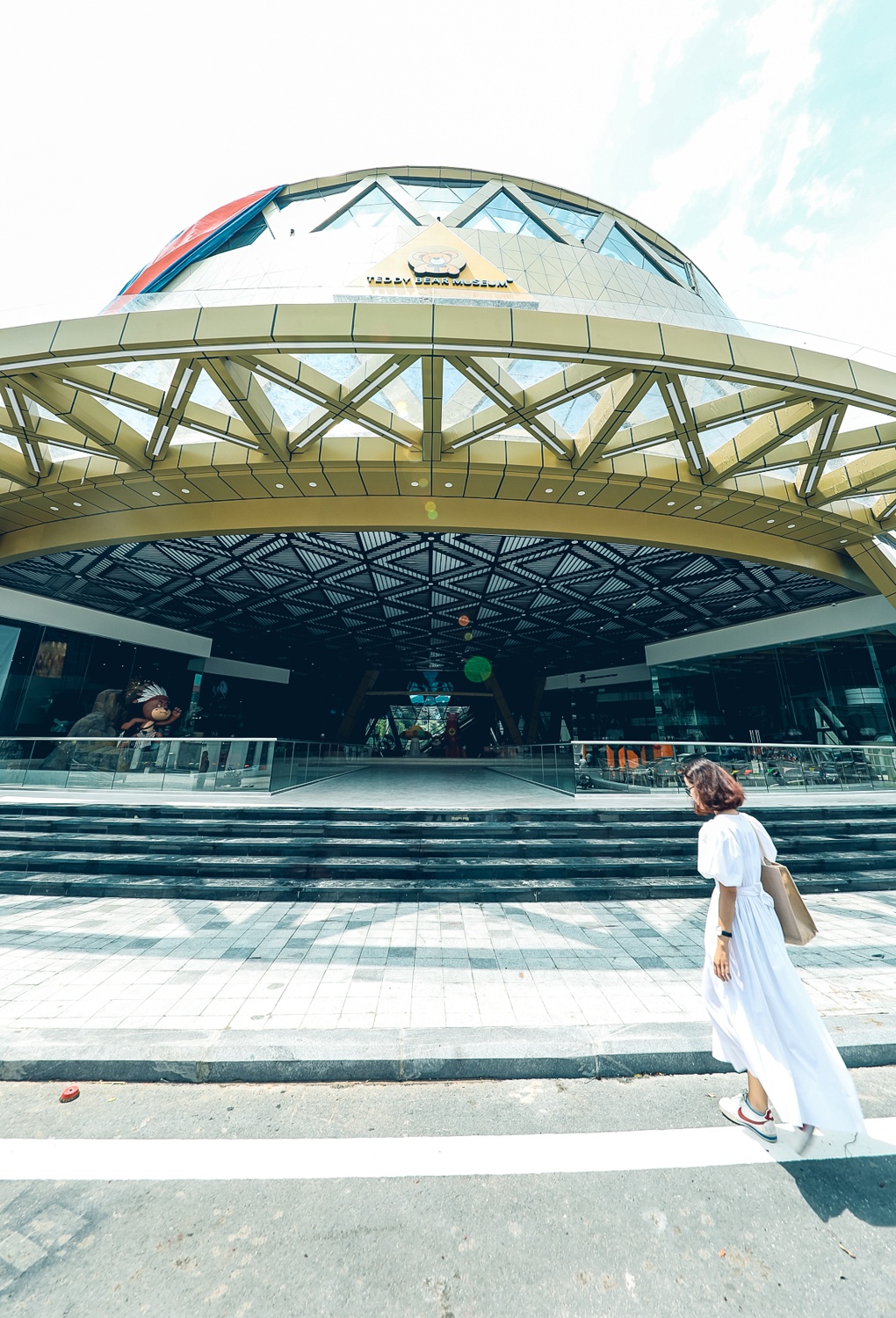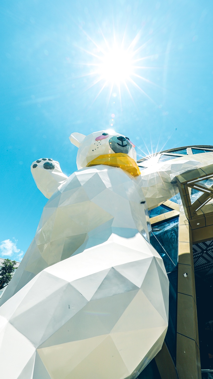 | Phía trước bảo tàng là chú gấu khổng lồ cao 15 m, tựa lưng vào tòa nhà 4 tầng. Với thiết kế hình tròn donut độc đáo, bảo tàng là một trong những công trình kiến trúc nổi bật giữa lòng “thành phố không ngủ” Grand World. |