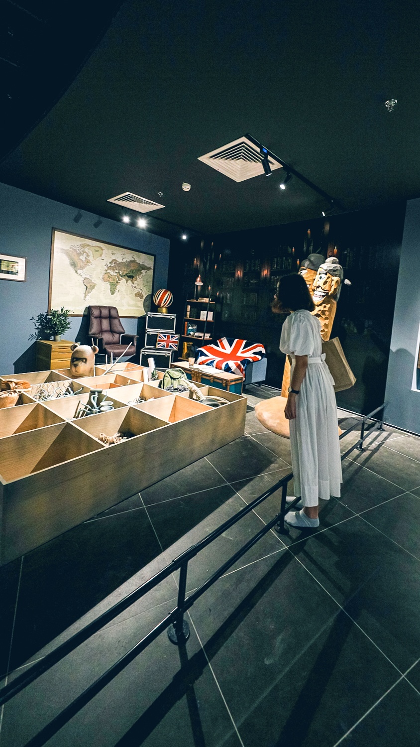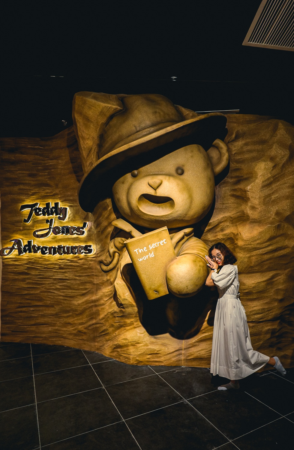 | Không gian chính của bảo tàng nằm ở tầng 2 với các khu trưng bày, triển lãm và tương tác đặc biệt. Ngay từ lối vào, tôi đã ấn tượng với tạo hình nhà khảo cổ học gấu Teddy Jones - nhân vật chính trong hành trình phiêu lưu các vùng đất kỳ thú trên thế giới mà tôi sắp tham gia. |