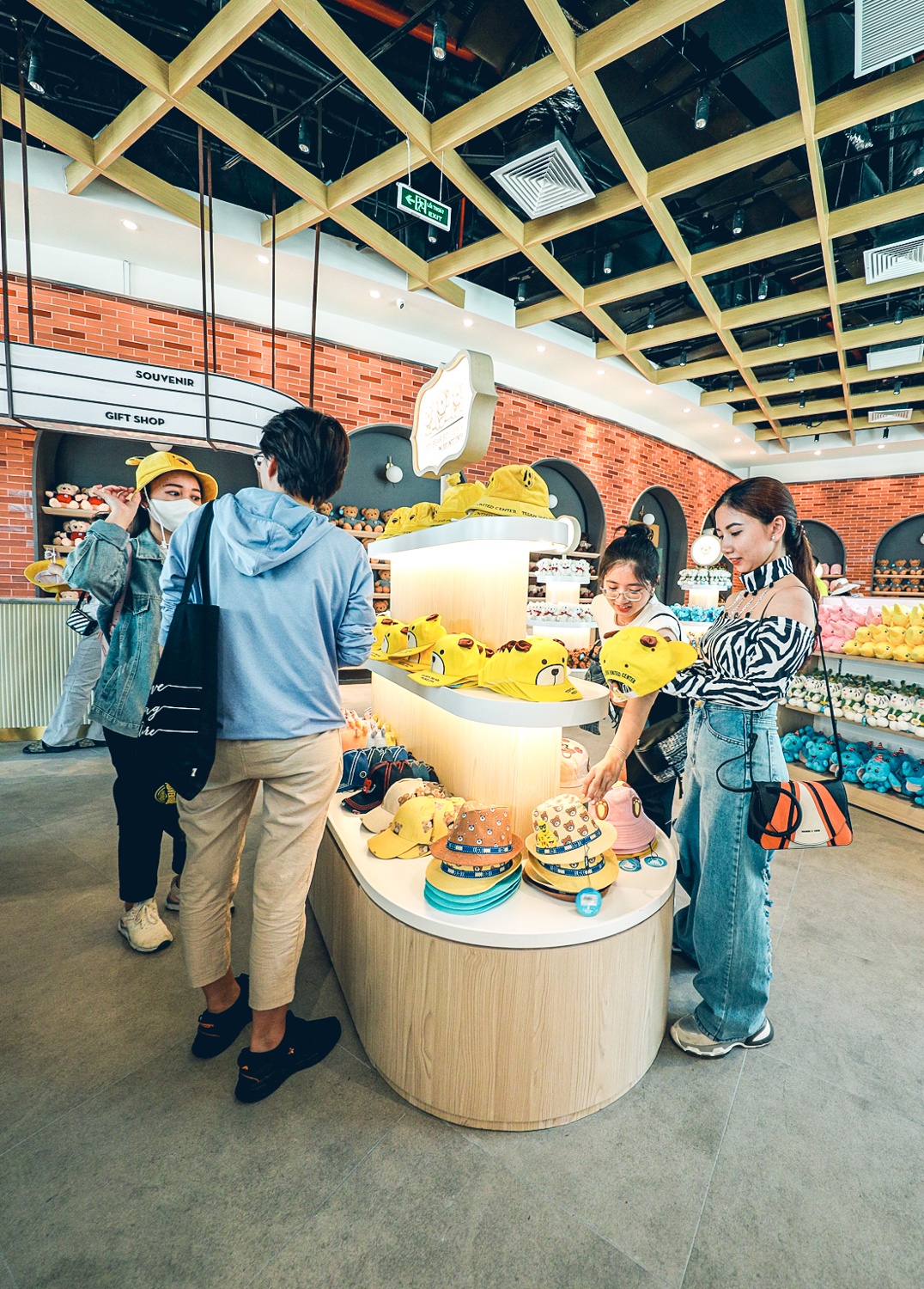 | Kế bên là quầy lưu niệm với nhiều chú gấu bông nhiều màu sắc, mang đặc trưng của từng vùng đất. Đến đây mà không “bưng” về một em thì thật là thiếu sót. |