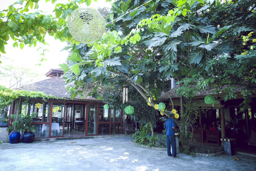 | Khuôn viên nhà á hậu khá rộng rãi, được bày trí khá bình dân, thân thiện. Khoảng sân gần bờ sông là khu vực kinh doanh nhà hàng ăn uống. Nhà hàng lúc này đã được dọn dẹp sạch sẽ, trang trí bắt mắt để cả nhà chuẩn bị đón một năm mới ấm áp. |