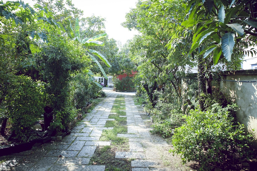 | Lối đi trong vườn được lát gạch thô tươm tất. Mỗi sáng, bố mẹ Thiên Lý đều trực tiếp tưới cây và chăm sóc từng chậu cây. Trước đây, bố cô là giảng viên tại Đại học Khoa học Tự nhiên, mẹ là bác sĩ khoa mắt. |