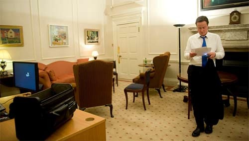 | Thủ tướng Anh David Cameron tại phòng làm việc của ông ở số 10 Phố Downing, London. |