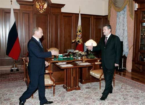 | Tổng thống Nga Vladimir Putin tiếp khách tại phòng làm việc của ông ở Điện Kremlin, Moscow. |