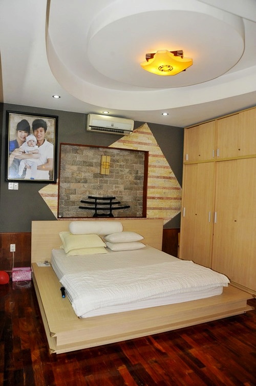 | Phòng ngủ của vợ chồng Lý Hải được thiết kế đơn giản, trang nhã. |