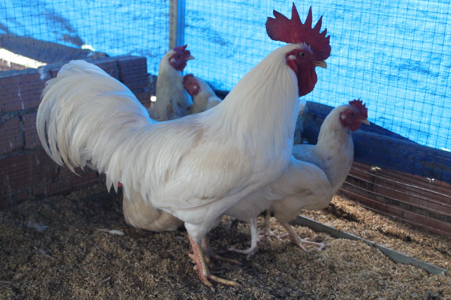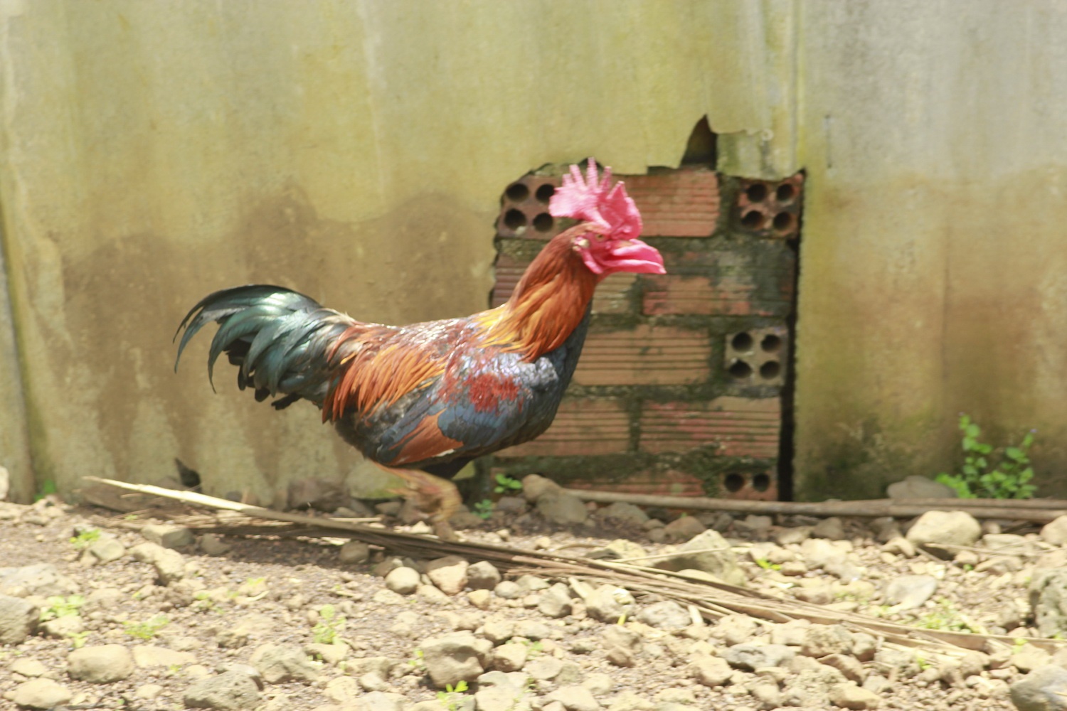Ngoài giống gà nhiều cựa, ở trang trại còn có nhiều loài cũng khá độc, như gà Đông Tảo, công Ấn Độ, chim trĩ xám, vịt trời... Trong ảnh là giống gà Đông Tảo chân to.