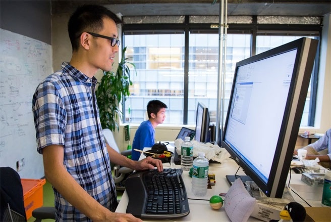 Chỉ cần bấm nút, các kỹ sư của Facebook có thể nâng độ cao của chiếc bàn và làm việc ở tư thế đứng.