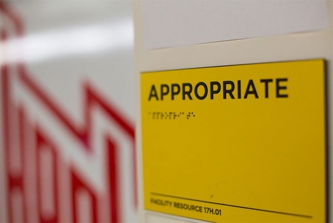 Mỗi phòng họp trong văn phòng của Facebook có một tên gọi riêng thú vị. Khi bổ sung tiền tố “in” (“ở”) vào trước những tên gọi này, sẽ có những cái tên khiến bạn bật cười. Chẳng hạn, phòng họp này có tên là “Appropriate”. Nếu nói là họp ở “Appropriate”, sẽ có từ “inappropriate” có nghĩa là “không phù hợp”.
