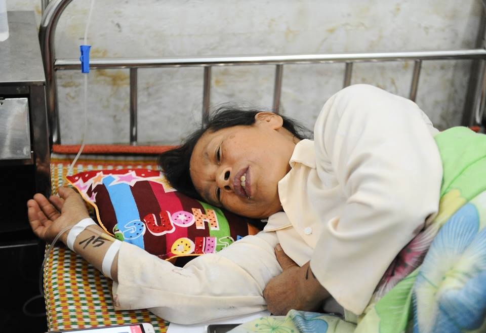 | Bà Nguyễn Thị Chắt vẫn chưa hết sợ hãi dù được các bác sĩ điều trị tại bệnh viện đa khoa tỉnh Vĩnh Phúc. Ảnh: Việt Hùng. |