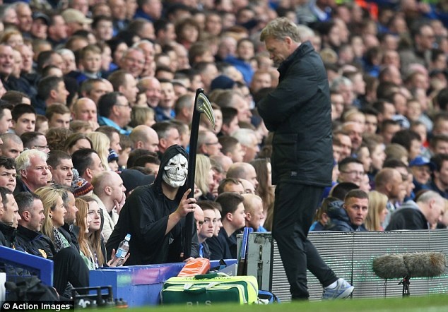 Trong cuộc đụng độ giữa Everton và M.U tại Goodison Park, một fan đã hóa trang Thần chết hướng lưỡi hái tử thần về phía HLV David Moyes sau khi bầy Quỷ đỏ bị dẫn 0-2 ngay trong hiệp 1. Dĩ nhiên, với hình ảnh phản cảm trên, fan cuồng đóng giả Thần chết đã bị cảnh sát tống cổ khỏi sân.