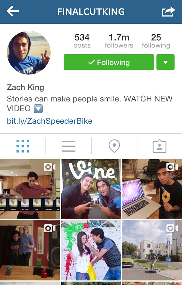Tháng 9/2013, Zach King tham gia mạng xã hội chia sẻ video mang tên Vines và nhanh chủ trở thành "bá chủ" ở đó với 2,1 triệu lượt theo dõi.
