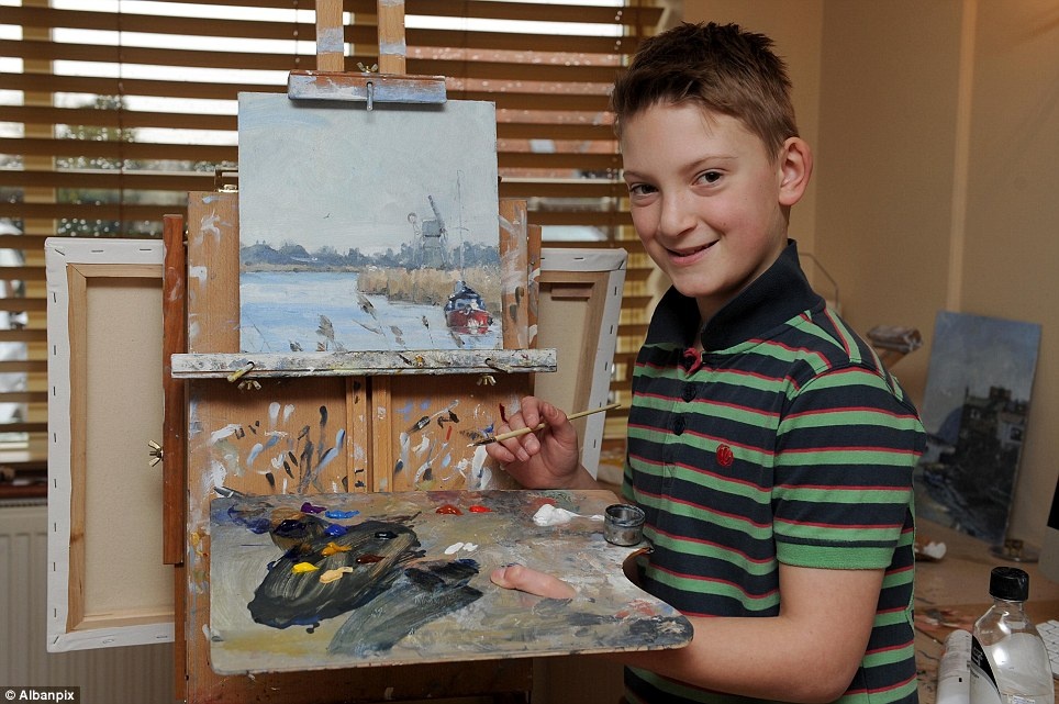 | Kieron Williamson đã học xong tiểu học và sẽ học tại nhà trong thời gian sắp tới để có thể dành nhiều thời gian hơn cho việc vẽ tranh. |