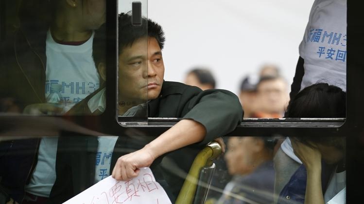 | Thân nhân của một hành khách chờ trên xe bus để tới đại sứ quán Malaysia. Ảnh: Reuters |