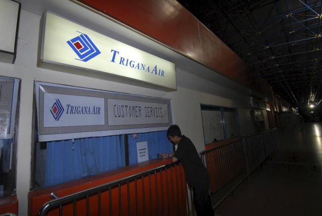 Một người đàn ông đứng phía trước khu vực phục vụ khách hàng đã đóng cửa của hãng Trigana Air ở sân bay Sentane, gần Jayapura, tỉnh Papua tối 16/8. Phi cơ ATR 42 chở 54 người biến mất khi thực hiện lộ trình từ thành phố Jayapura tới thành phố Oksibil. Ảnh: Reuters |