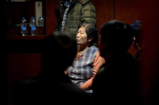 | Gia đình của các hành khách trên chuyến bay MH 370 đang ngóng tin tức về chiếc máy bay mất tích qua TV tại một phòng chờ của khách sạn Lido, Bắc Kinh, hôm 10/3. Ảnh: AFP. |