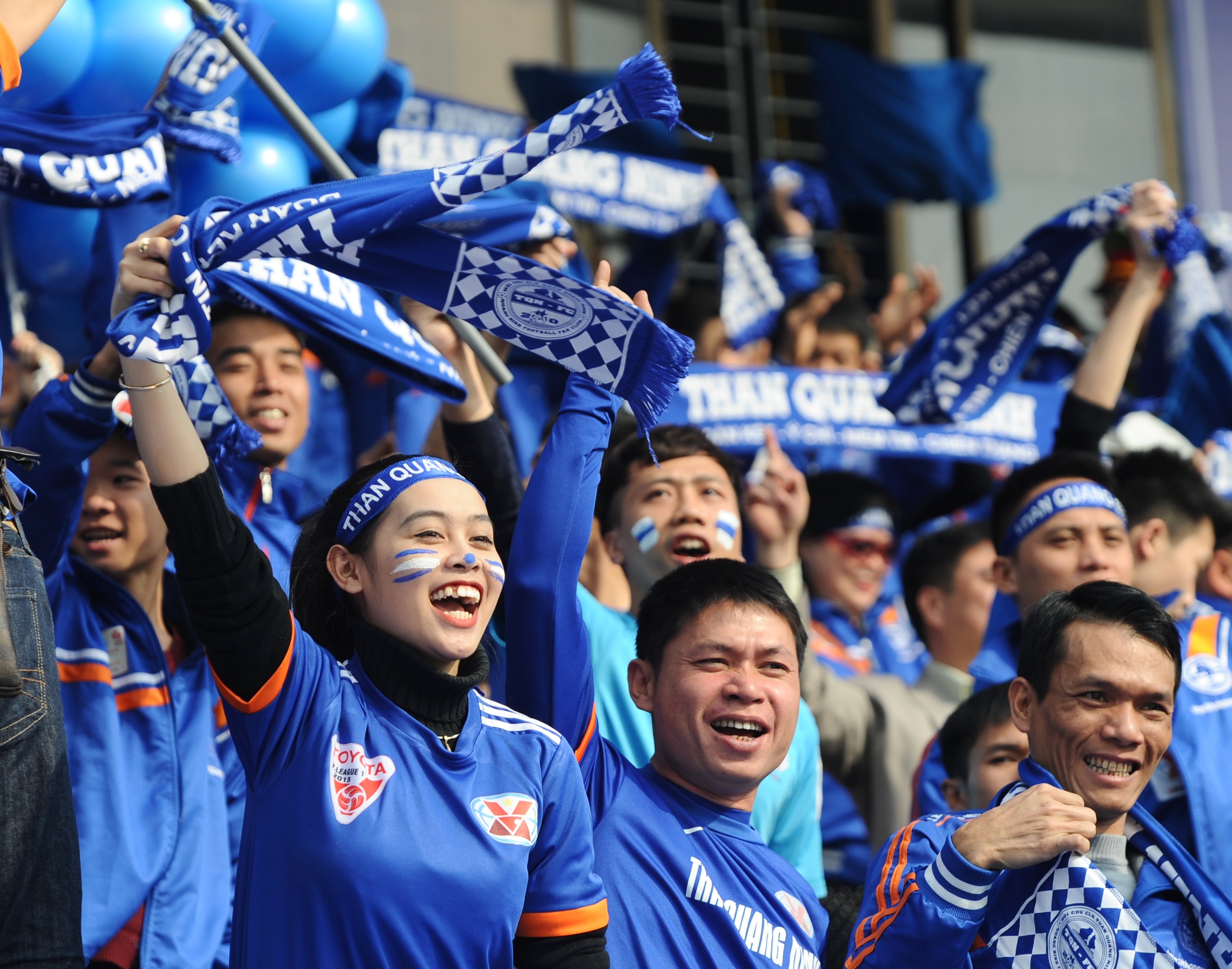 | Than Quảng Ninh gây ấn tượng mạnh trên sân cỏ lẫn khán đài. Ảnh: Tùng Lê. |