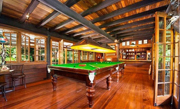 | Bàn bida trong căn nhà. |