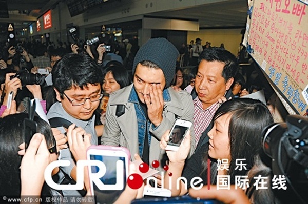 | Luhan mệt mỏi sau khi bị vấp ngã tại sân bay Gimpo. |