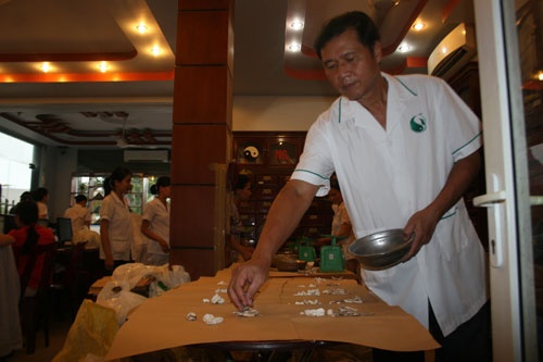 Dẫn chúng tôi đến một tủ thuốc khô, ông Toàn hồ hởi bảo: “Thuốc trong tủ này dùng để chữa bệnh viêm xoang, hầu hết những loại dược liệu này đều phải thu mua và kiểm định chất lượng thông qua Viện Dược liệu Việt Nam”. Với những loại thuốc này, chỉ cần người bệnh kiên trì uống thuốc trong vòng 2 tháng cộng với việc ăn kiêng thì sẽ đem lại tác dụng tốt.
