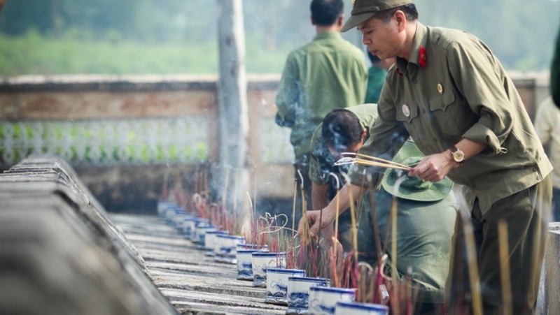 Những cựu chiến binh thắp nén nhang tại các phần mộ của những đồng đội cũ