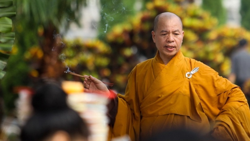 Sư thầy Thích Vinh Quang làm lễ cầu siêu cho các anh hùng liệt sĩ hi sinh tại mặt trận Vị Xuyên, vốn là một người lính pháo binh của sư đoàn 356