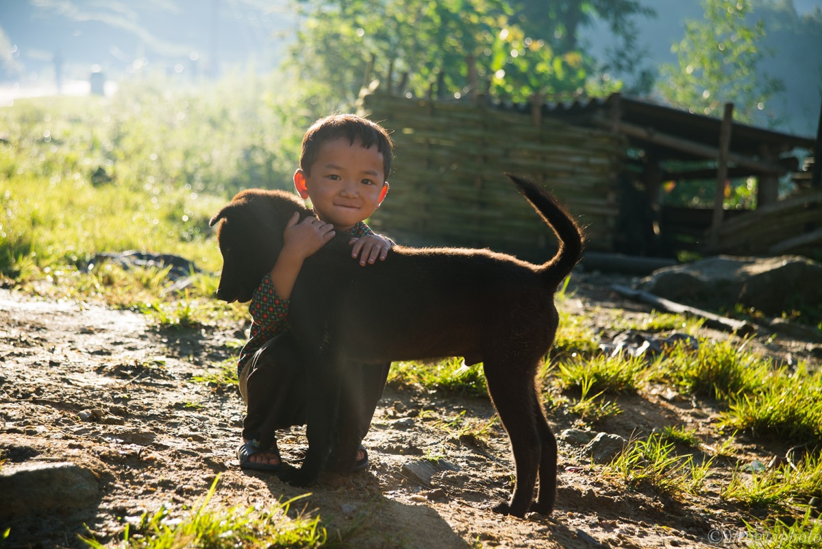 | Trên những con đường qua những bản làng Tây Bắc, bạn dễ bắt gặp những hình ảnh dễ thương, những nụ cười hiền hậu của những em nhỏ nơi đây |