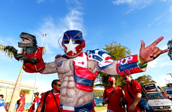 | Màn hóa trang ấn tượng của một CĐV Chile. |