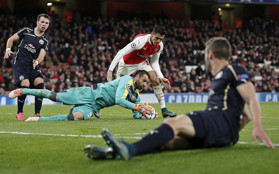 | Chiến thắng 3-0 được ấn định cho đoàn quân của huấn luyện viên Arsene Wenger ở phút 69. Đón đường chọc khe thông minh của Joel Campbell, Sanchez băng xuống vượt qua thủ thành Eduardo trước khi dứt điểm vào lưới trống. |