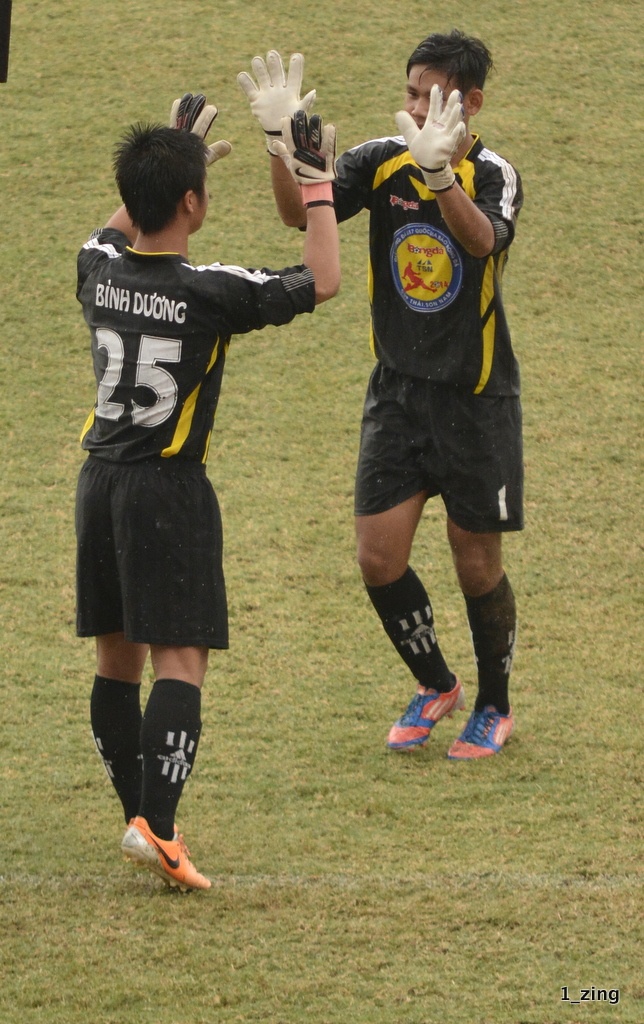 Hòa 2-2 sau 90 phút, 2 đội phải đá luân lưu 11 m để phân thắng bại. Bình Dương gây bất ngờ khi thủ môn dự bị Đoàn Ngọc Tài và sân thay cho thủ môn chính Phan Tuấn Vũ để bắt penalty, giống như Louis van Gaal đã làm với tuyển Hà Lan tại World Cup vừa qua.
