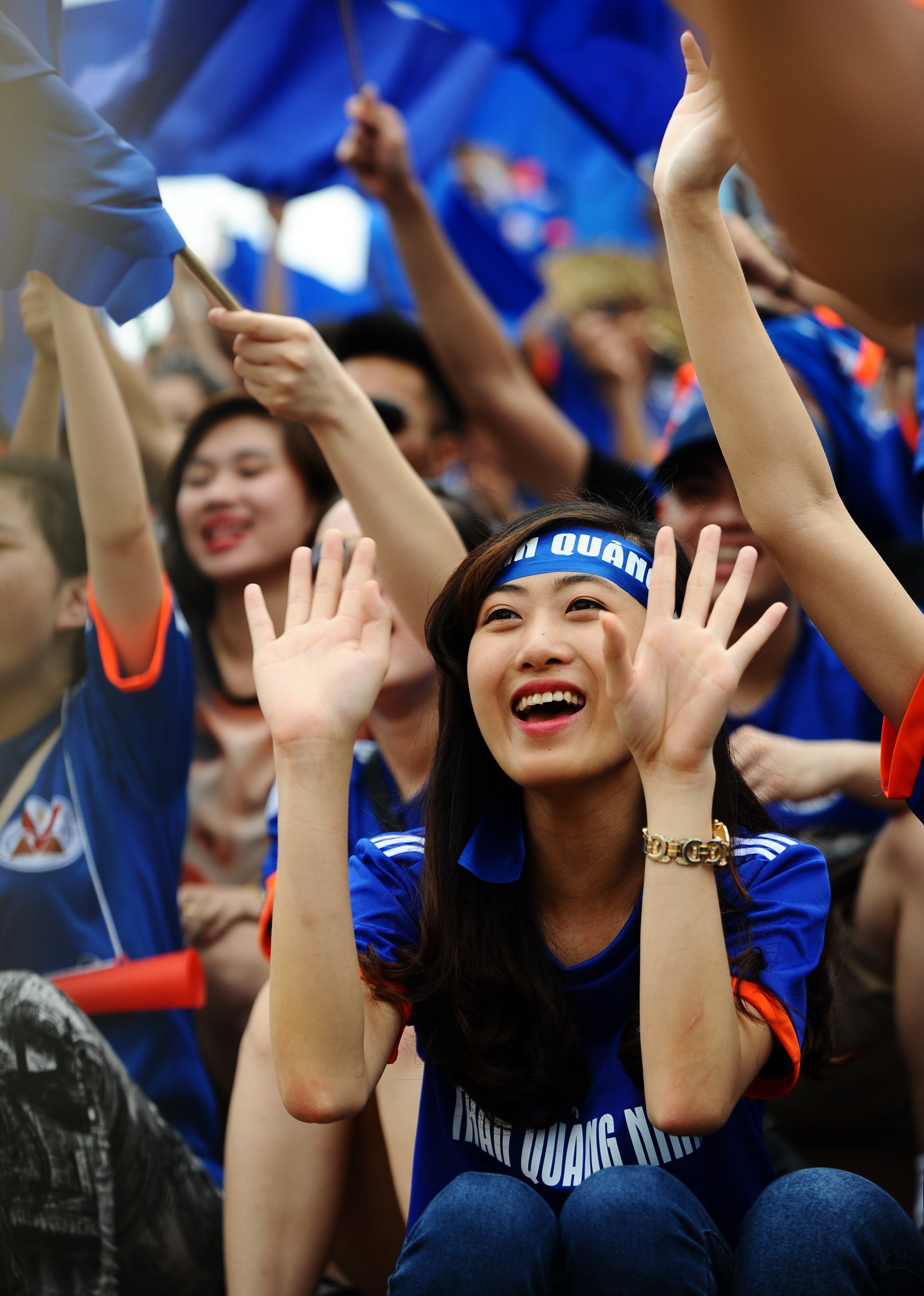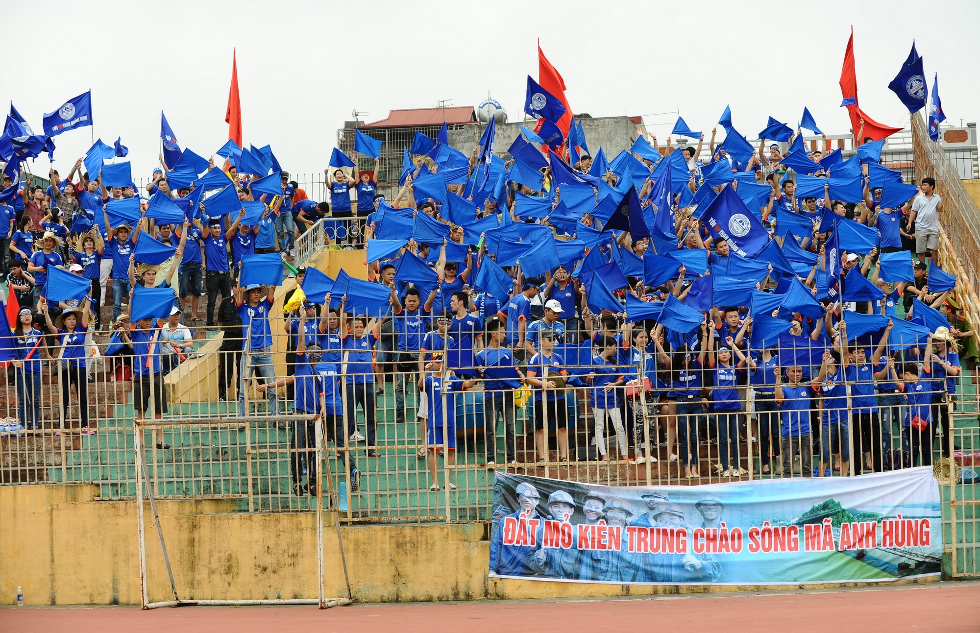 Khoảng 200 CĐV đội bóng Than Quảng Ninh không quản ngại đường xa vượt hơn 200 km tới Thanh Hóa để tiếp lửa cho đội bóng quê hương.