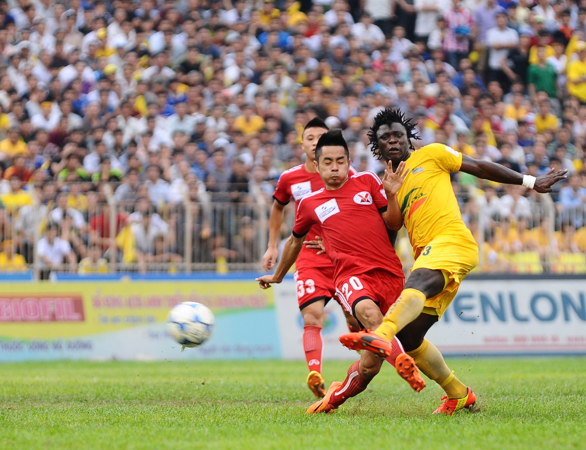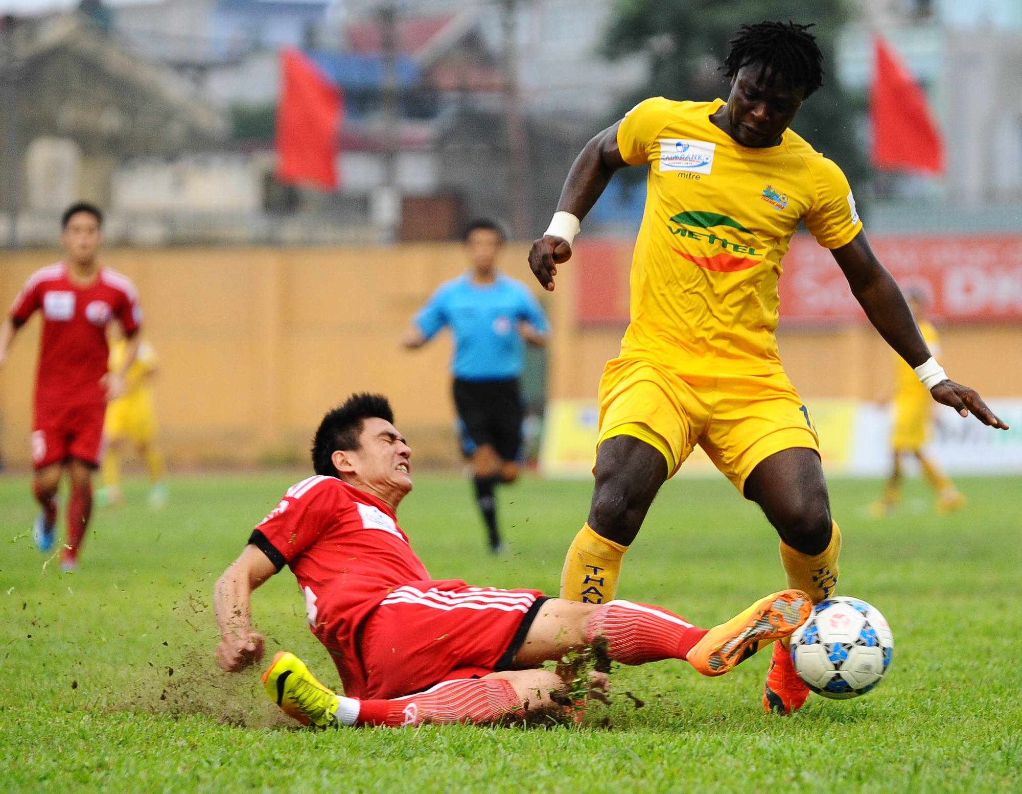 Tiền vệ nhập tịch Lê Văn Tân với thể lực sung mãn khuấy đảo hàng thủ mong manh của Than Quảng Ninh.