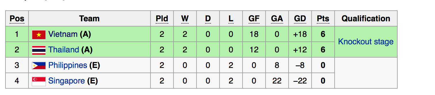 | Bảng xếp hạng tạm thời tại bảng A sau lượt đấu thứ 2. |