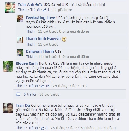 | Cư dân mạng cũng thể hiện sự thất vọng trước màn trình diễn của U23 Việt Nam. |