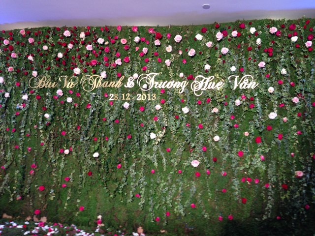 Bức tường hoa có tên hai vợ chồng Thanh Bùi.